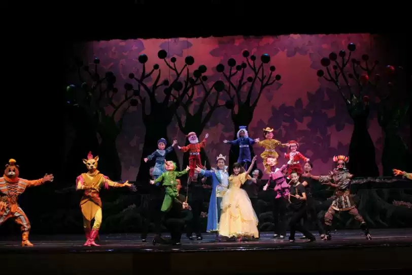 国内儿童剧首创的真人+木偶+动漫+场景的卡通偶形动漫形式,整个表演中,演员的脸部造型具有现代卡通的动漫特征,演员的表情道具按夸张、大对比的比例制作,所采用的音乐多是简洁动听、旋律流畅、易于上口流传并带有强烈的童谣风格。