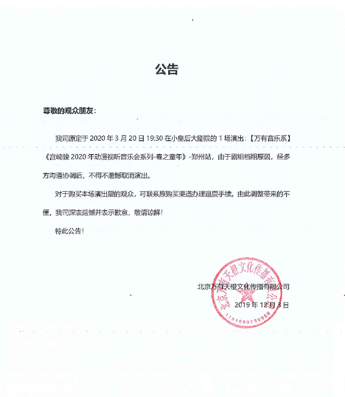 2020春之童年郑州动漫视听音乐会,为给各位观众朋友营造一个良好的欣赏音乐会的环境,此次音乐会演出希望观众朋友能提前抵达剧院,提早检票入场,避免迟到,迟到观众请在剧场入口处等待检票。请勿携带易燃易爆物品,有毒危险物品入场。请勿在场馆内抽烟。注意保管好随身财物,建议不要携带贵重物品。演出结束后,请留意自己身边是否遗留垃圾,请协助把垃圾带走,感谢您的支持!