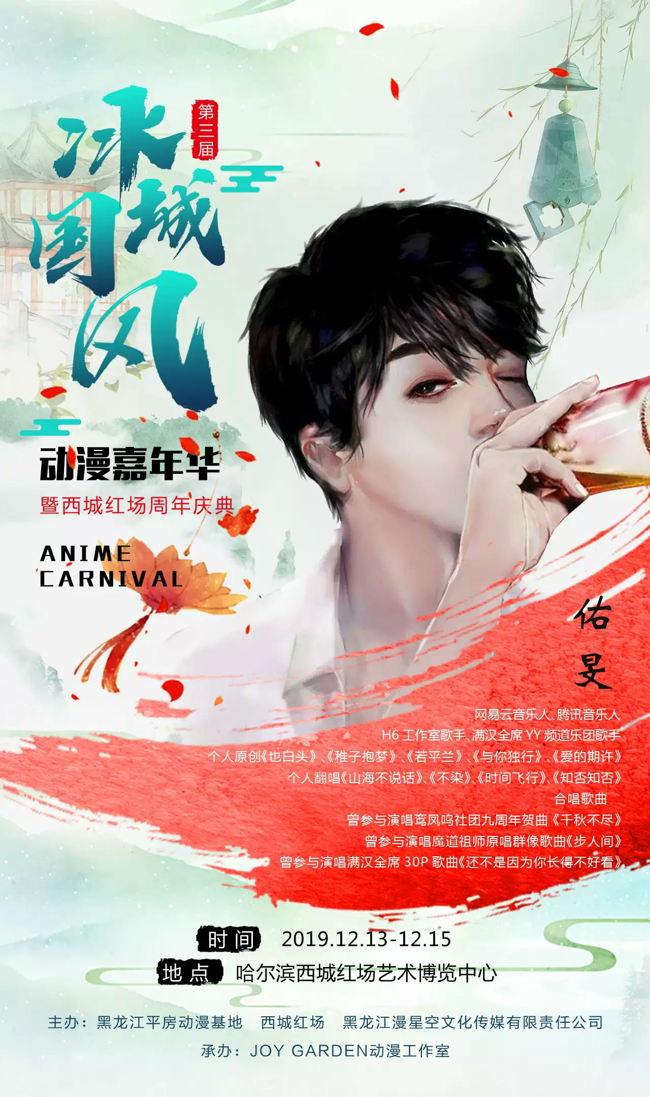 情义羁绊、曲长情短,当古风歌曲悠扬的旋律响起的时候,每个人的心头都会有一种挥洒热血的激荡情怀,这一次哈尔滨冰城国风音乐会夜场LIVE带着满满的诚意来了,年度国风动漫狂欢,海量演出嘉宾不容错过!