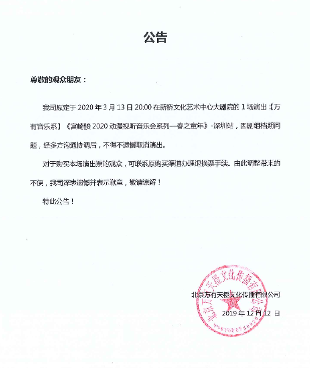 2020春之童年深圳动漫视听音乐会,请勿携带易燃,易爆炸和管制刀具等危险物品入场。文明观看演出,请大家遵守秩序,注意维护场内环境及氛围,请勿吸烟、随地吐痰、乱丢垃圾、损毁设施、攀爬护栏、踩踏座椅、投掷杂物,感谢您的支持!