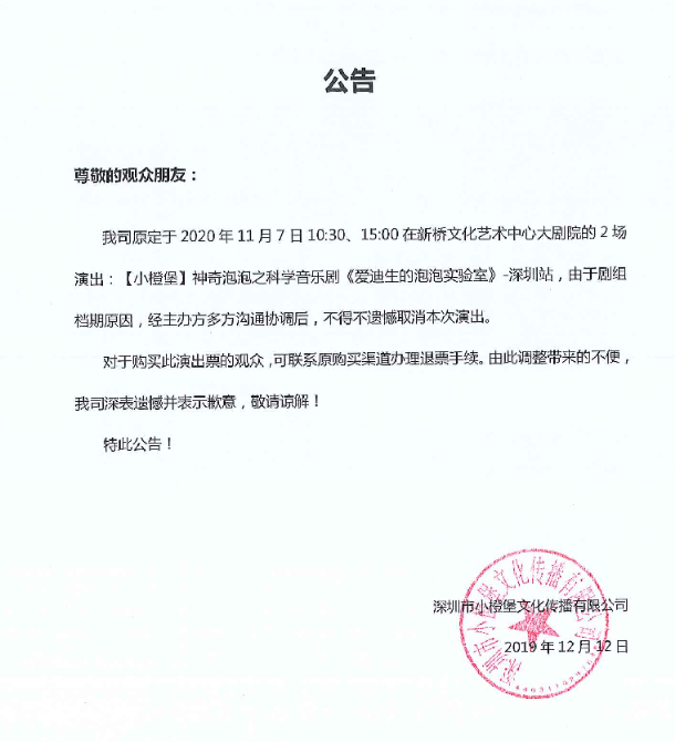 2020音乐剧爱迪生的泡泡实验深圳站,严禁携带易燃,易爆炸和管制刀具等危险物品入场。进场时请持票接受检验,检票后有序入场,听从现场工作人员的安排,不要窜区、窜位。文明观看演出,遵守现场秩序、请勿吸烟、随地吐痰、乱丢垃圾、损毁设施,感谢您的支持!
