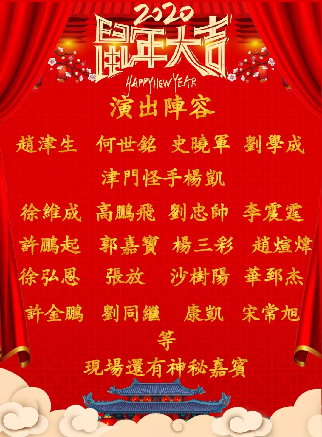 五、晚会最后还有大型舞台相声剧,还有意想不到的神秘嘉宾亲临现场用更精彩的曲艺形式 为您呈现跨年视觉盛宴。