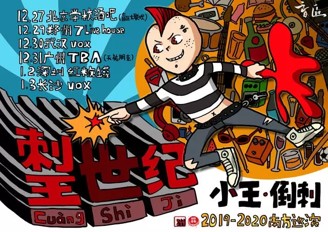 同时,这次巡演我们两支乐队也会带上最新周边,最新作品,以及将在巡演中首发、由倒刺的贝斯手孙放和小王的贝斯手养鸡执笔的合作漫画集!期待与各个城市最优秀的乐队同台,和最酷的年轻人深入交流,边喝边玩!