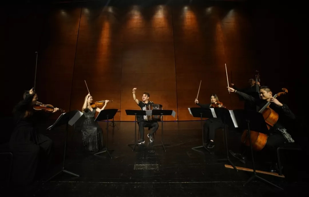 西区爱乐室内乐团本场音乐会采用新颖的乐团编制和演奏形式,选用钢琴、手风琴、小提琴、打击乐、大提琴、吉他进行独具匠心的编排。没有了铜管的喧嚣、木管的朴拙,只有弦乐队如歌一般的倾诉,伴随着钢琴的唯美和、巴扬的灵动以及吉他拨动心弦的音色,用至真至纯的音乐魅力感动观众,用悠扬的旋律致敬经典。