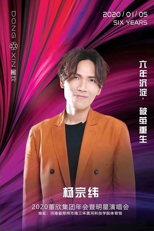 董欣集团6年沉淀,破茧重生,新晋超火歌手阿悠悠,甜心教主王心凌,南拳妈妈,杨宗纬,2020年1月5日相约黄河体育馆!