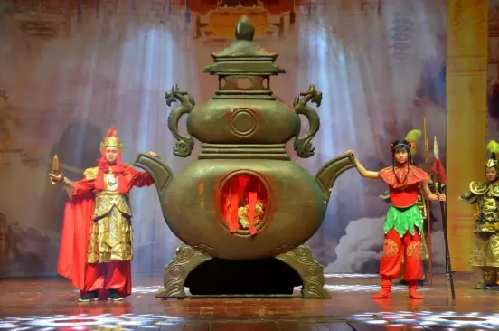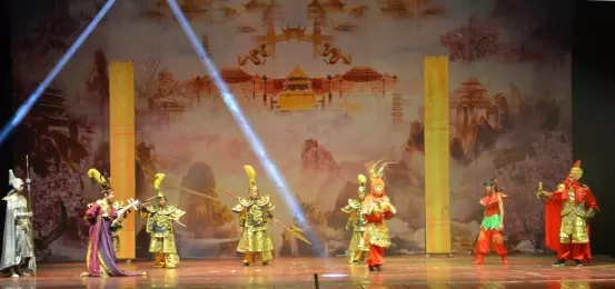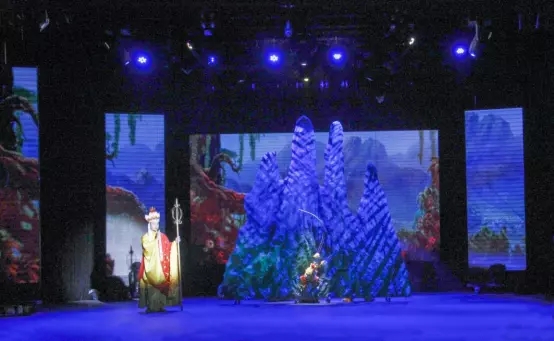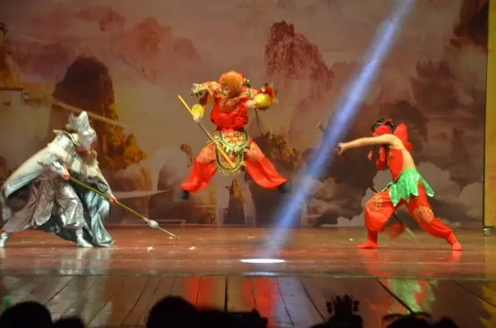 在舞台上,声、色、光、影四重空间元素交错组合,搭配杂技高难度动作。孙悟空灵石出世,三星洞学艺等场景,展示高超技艺。多媒体视觉呈现,虚实结合,刺激你的视觉感官。