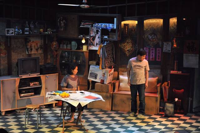 该剧没有华丽的辞藻和诗意的语言,生活化的带有一些粗口的粤语比普通话有着更强的感染力,和台词相辅相成的是舞台布景,极富生活质感:老钟、吊灯、小电视、会转的吊扇、香炉、老式的柜子、厨房的布帘等等,种种生活上的细节展示了一个完整的香港底层家庭,真实得就好像在旁观邻居家的一顿晚餐。