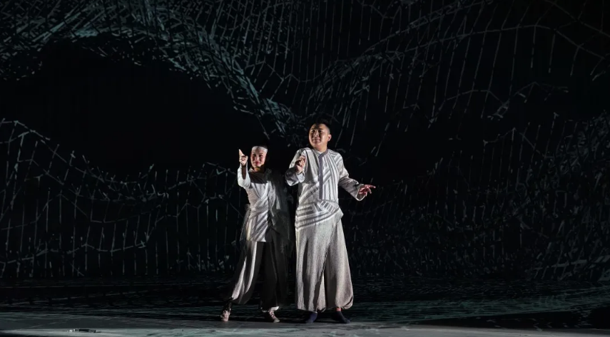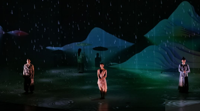 《白蛇》的舞台视觉效果令人耳目一新,舞台上设置了一个巨大的、形如盒子的三面结构,多媒体效果让观众仿佛置身虚幻仙境。