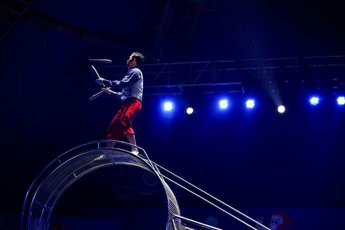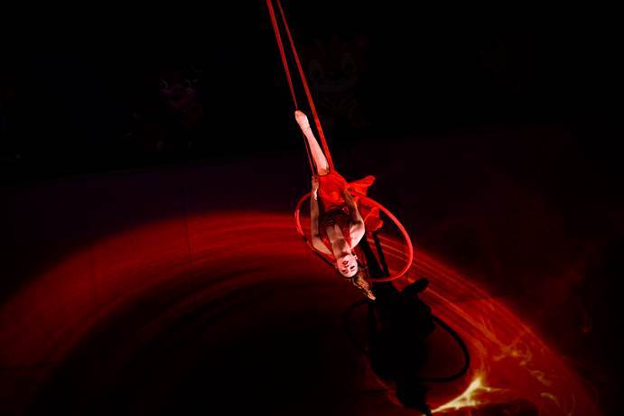 惊险刺激的大飞轮表演要求表演者在没有任何保护措施的情况下做出各种你意想不到的高难度动作,同时还要结合自身重力,通过技巧实现转动,其深厚的表演功力定让你惊叹不已!再看,流光飞舞,独影蹁跹,空中表演者的每个动作都仿佛是一个唯美的词,把艺术串成一首梦幻的诗......