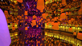 在各大社交平台上疯狂刷屏的《森林之光》!在这里也能get到同款了!数不清的灯盏高低错落地凌空悬挂,会随着时间、音乐......变换而不停的变幻!如同坠入了一个迷离的幻境!