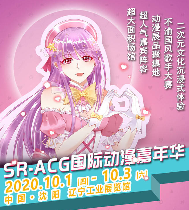 2020沈阳SR-ACG国际动漫嘉年华,本次嘉年华云集国内外一线动漫、游戏、娱乐、潮玩、lolita、古风、国风等相关IP,是一场面向全民的二次元盛宴,是一场二次元爱好者不容错过的一次狂欢。
