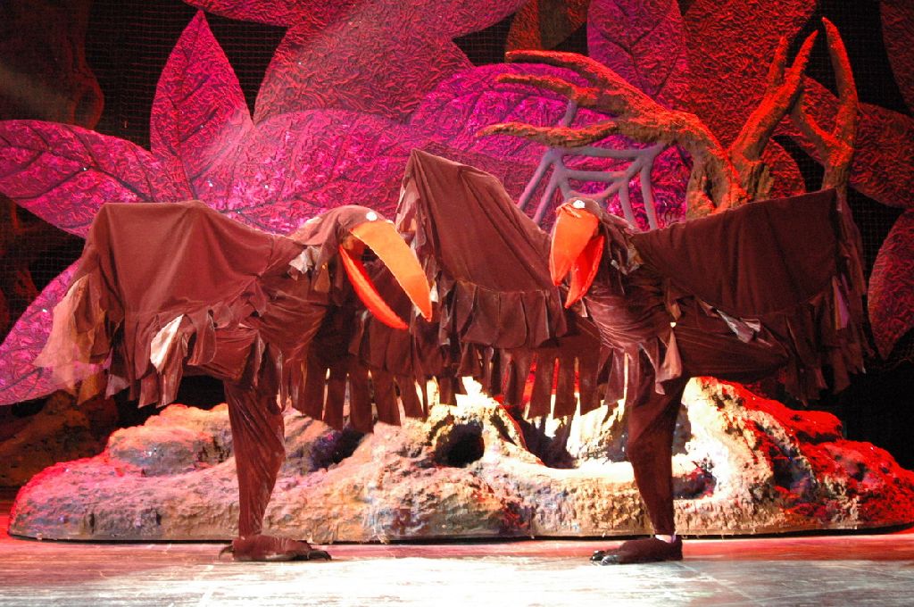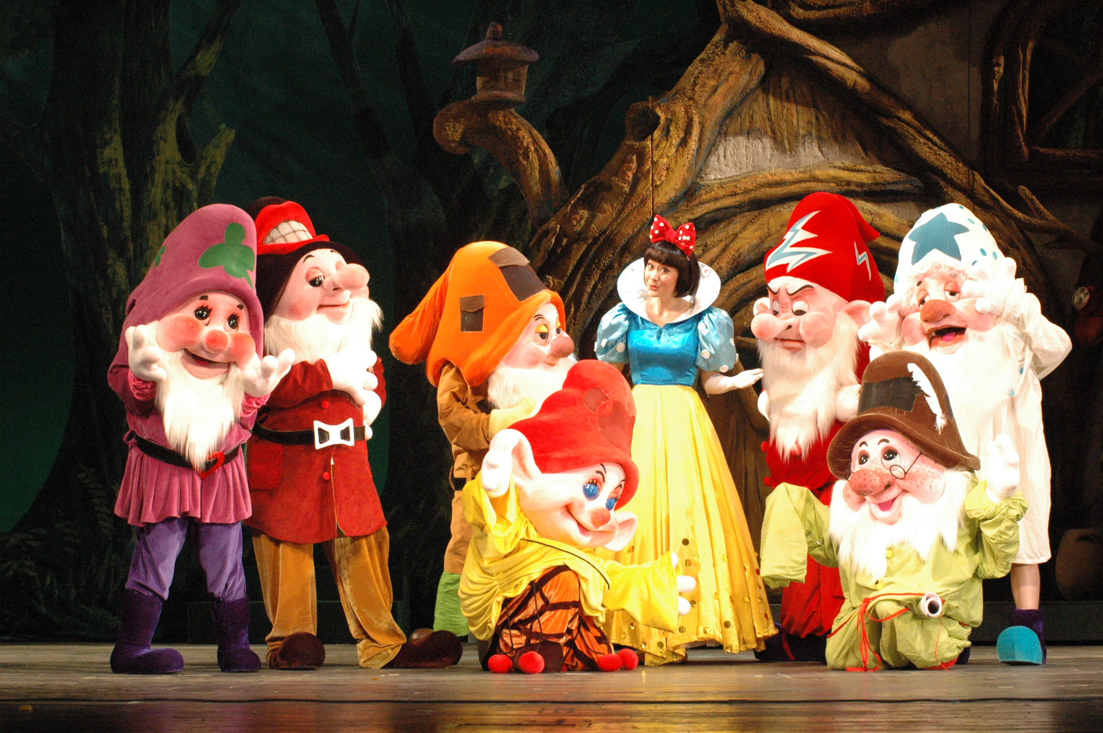 演出现场,演员与精美的人偶同台,用全新的形式再度演绎世界经典童话,为了让小矮人更加生动,演员们都要穿上特殊的演出服,透过小矮人的帽子来获得视野,让小矮人瞬间变矮,从而与白雪公主形成身高差。而剧中的乌鸦嘴可以上下闭合,翅膀在演员的操控下更是异常灵活。