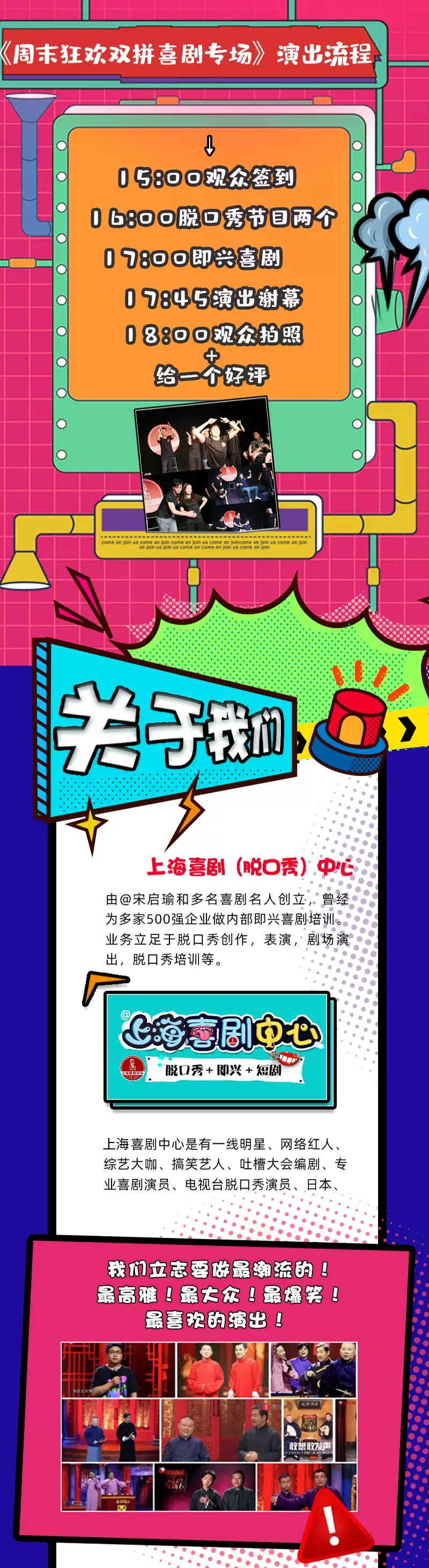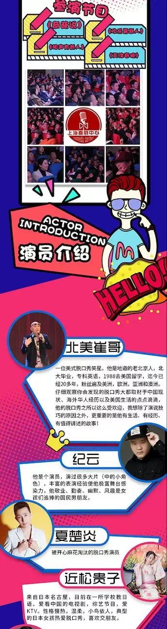 周六狂欢节上海双拼喜剧专场,专治各种不开心,在周六加入我们,让您一扫一周疲惫。