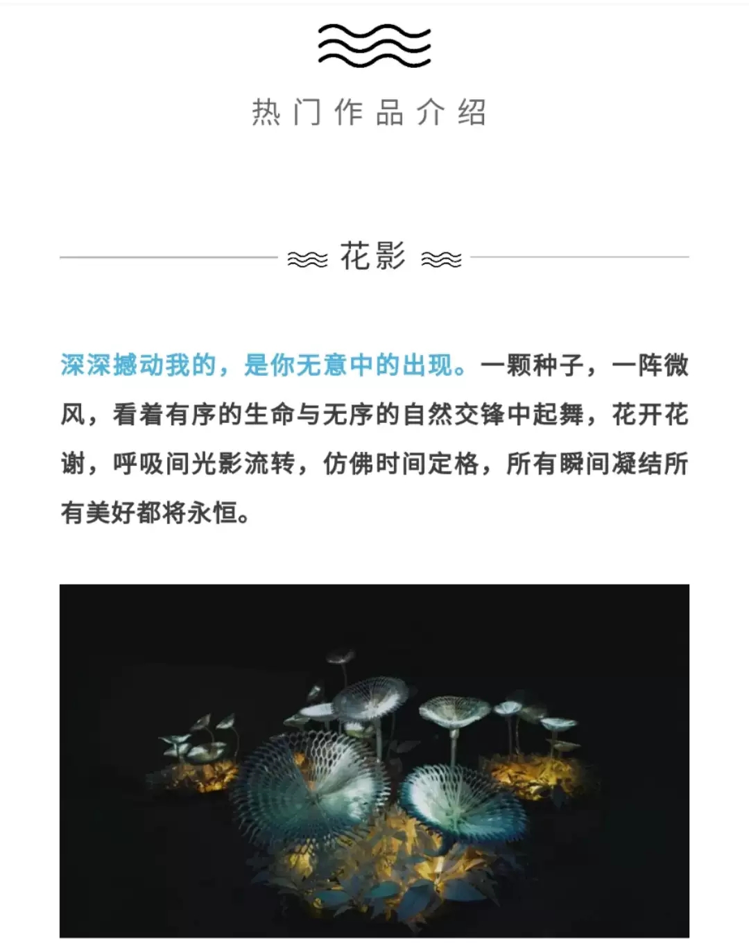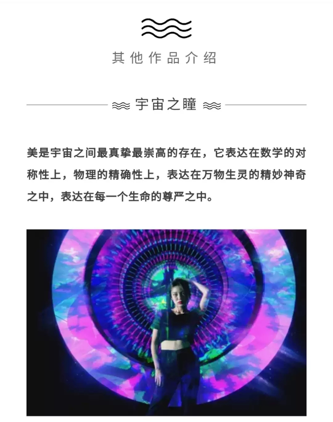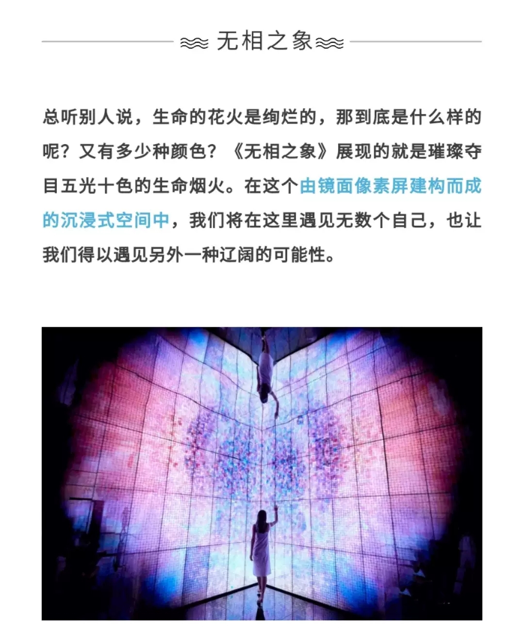 他们将艺术、自然、环境、科技、信息与万物结合在一起,共同打造出多维度、多感官的超炫艺术体验。一经展出,便受到了《世界新闻日报》、《Digital Journal》等国内外权威媒体的盛誉,更被英国《路透社》评为“2019年最值得期待的展览”、“科技与艺术的奇幻梦境”。