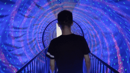 当这条星空隧道动起来的时候,可就不是拍照美不美的问题了,每往前走一步,你的重心都像被强行偏离了一样,头晕目眩东倒西歪!所以在玩这个装置的时候千万要把随身携带的重要物品放好,甩下桥可就捡不回来了!