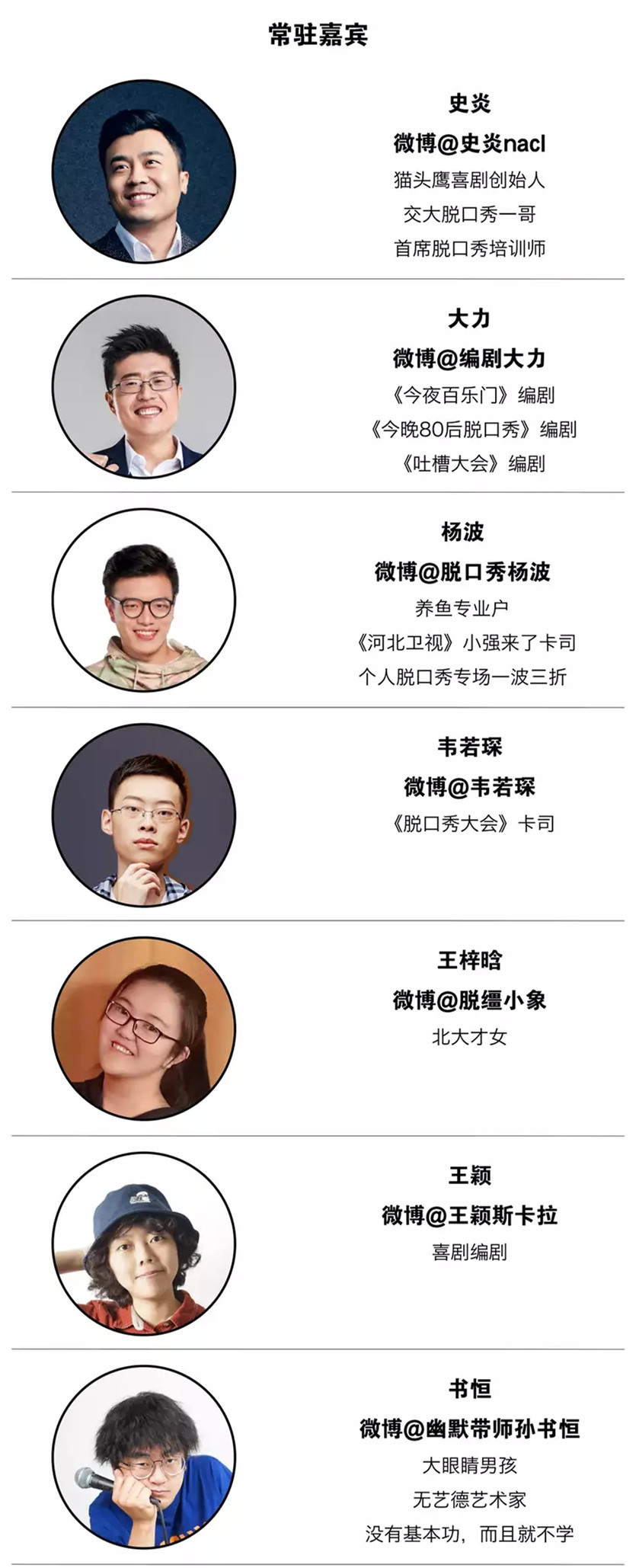 创始人史炎,知名脱口秀演员,《 今晚80后脱口秀》卡司,《吐槽大会》《脱口秀大会》嘉宾。