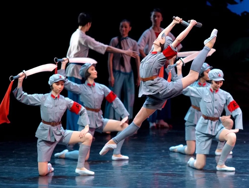 这部剧恰恰通过芭蕾艺术内在规定的人文主义传统的女性身体革命叙事,实现了对革命激情的助燃和革命理想的隐喻转换。旧传统下公众场合的中国女性什么时候不是重重包裹、低眉顺眼、含胸曲背,但是今天看到的革命女性敢于抛头露面、敢于挺胸抬头,敢于肯定和赞美自己的性别,包括肯定和赞美自己这个性别的人体之美。