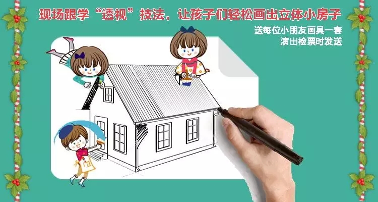 看画手会痒。看剧过程中,会给每位小朋友发一套简单绘画工具,舞台上大师们通过多媒体大屏,手把手的教给孩子们神奇的绘画方法,让孩子们现场画出立体的小房子,多么神奇的经历!