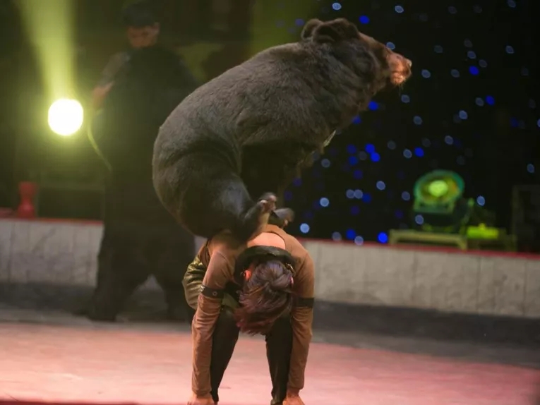 大黑熊解放双手,双腿直立,既能灵活地转呼啦圈、轻松地跳马,也会“笨拙”地上演“地主家的傻儿子”,技能满点,个性满分。