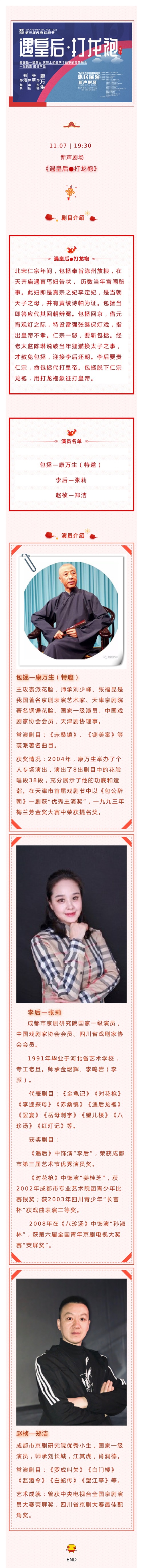 京剧《遇皇后打龙袍》成都站,让我们与全国各地赶来的戏迷在此欢聚一堂,共享这场国粹盛宴,一同去品味这场经典故事。