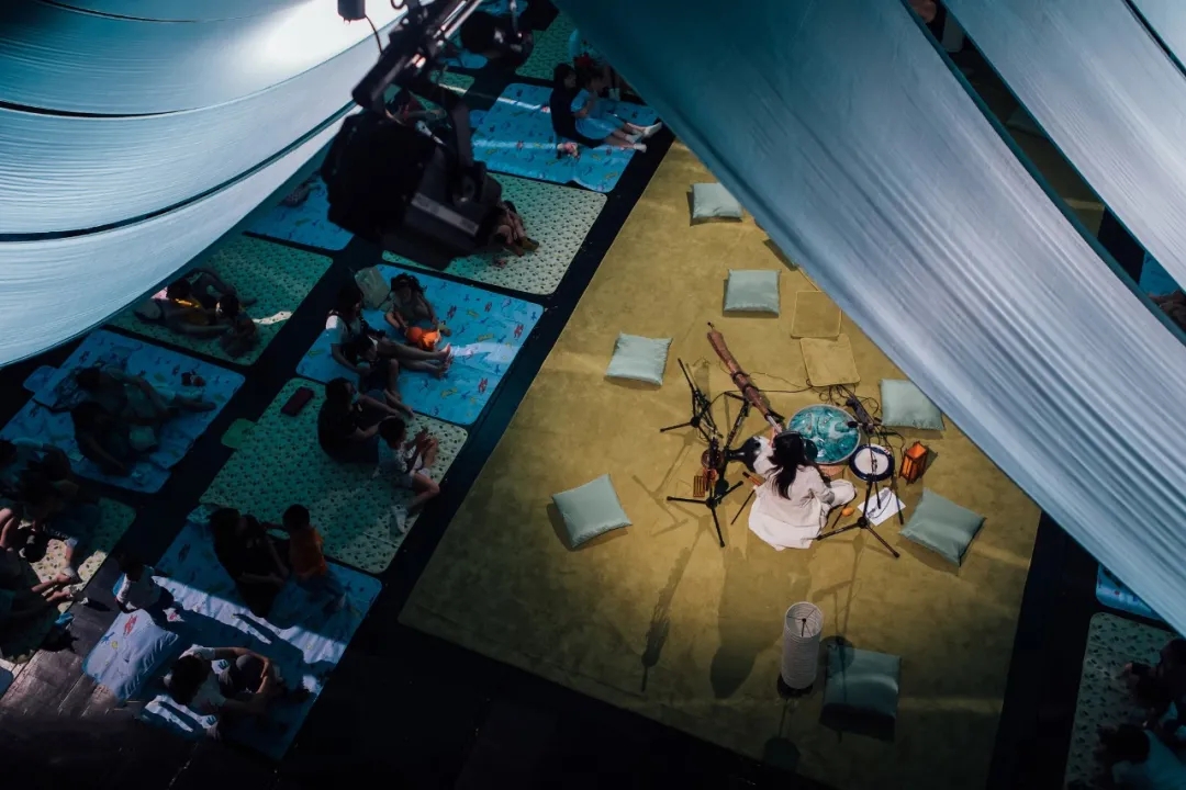 2个人,8个节气,20余乐器,45分钟,大人和孩子躺在幕帘下,闭上眼睛,耳边来自大自然的音乐,让人仿佛回到童年的夏夜,摇着蒲扇,听着吱吱吱地知了声,睁眼就是满天星空,数也数不过来....