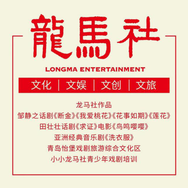 2008年,著名编剧邹静之、刘恒和万方成立了龙马社,自2015年开始转向多元化发展,从纯粹的创作集群转向综合性的文化空间。龙马社于2016年引进制作韩国盛演十余年国民音乐剧《洗衣服》中文版,2017年出品制作邹静之编剧,“铁三角”张国立、王刚、张铁林联袂主演的首部舞台巨制《断金》,2018年出品制作由田壮壮执导、赵薇领衔的话剧《求证》。2019年再邀张国立首次担任话剧导演,重排邹静之经典剧作《我爱桃花》,由小沈阳,高晓菲主演。未来龙马社还将保持一年一部大制作的节奏,更多精品,敬请期待。