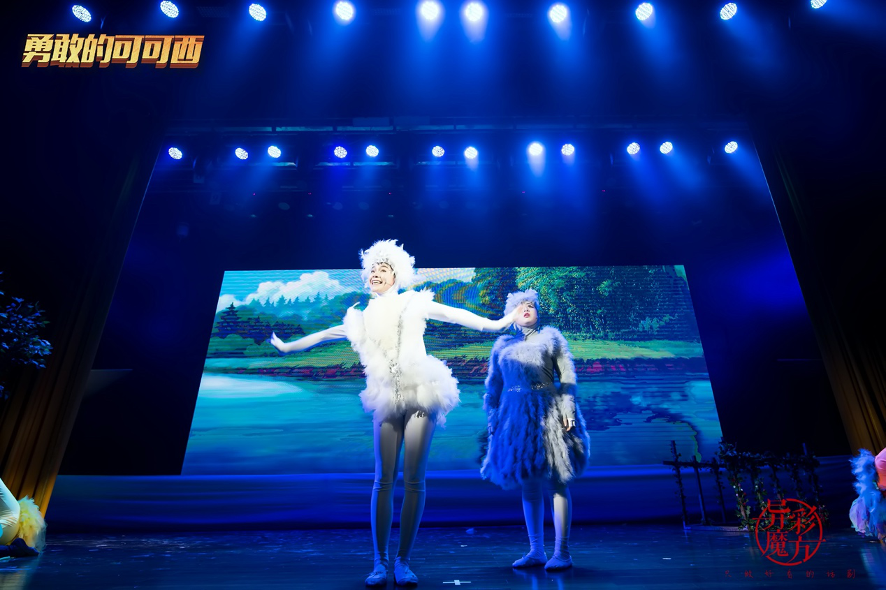 《勇敢的可可西》是国内顶尖的大型儿童剧,小天鹅可可西、天鹅妈妈孔雀姐姐、黄鹂鸟、黄鼠狼、小松鼠、猫头鹰爷爷……演员角色多达11人!而当《可可西》的演员们穿上华丽闪亮的羽毛装,鲜活的卡通形象,以及精美炫目的舞台布景,让孩子一秒爱上!11