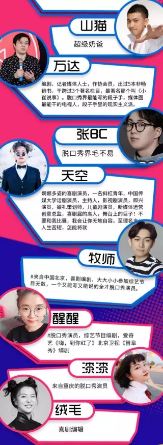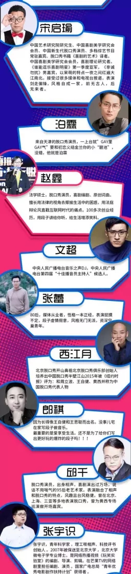 鉴于目前脱口秀在中国生根发芽,茁壮成长,集合全国所有活跃的脱口秀演员;