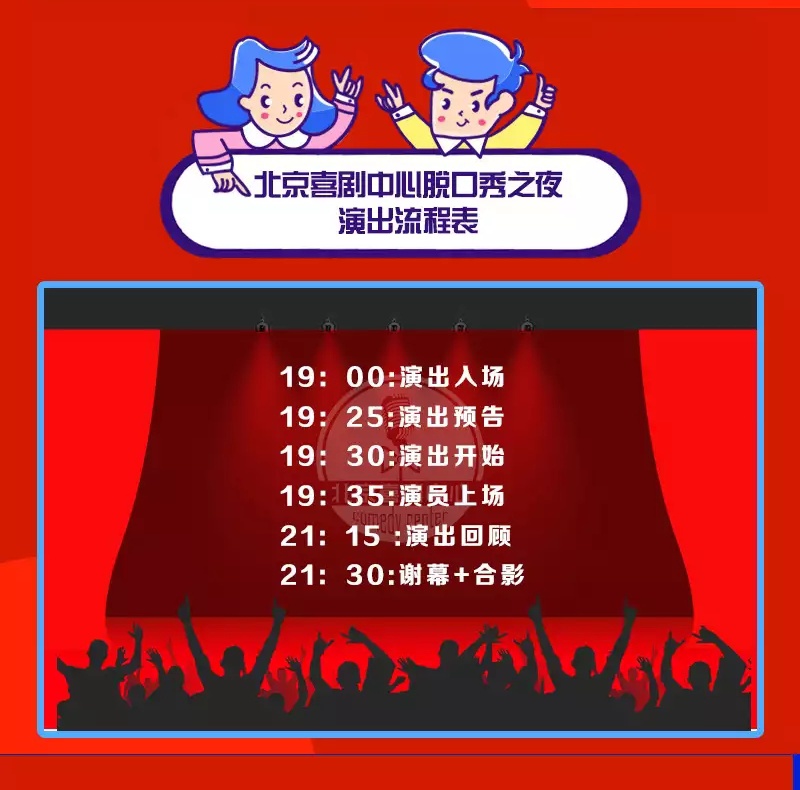 4.演出过程中请大家不要来回走动上厕所,因为我们的观众人数较多,您可能还没挤出去就已经结束了。