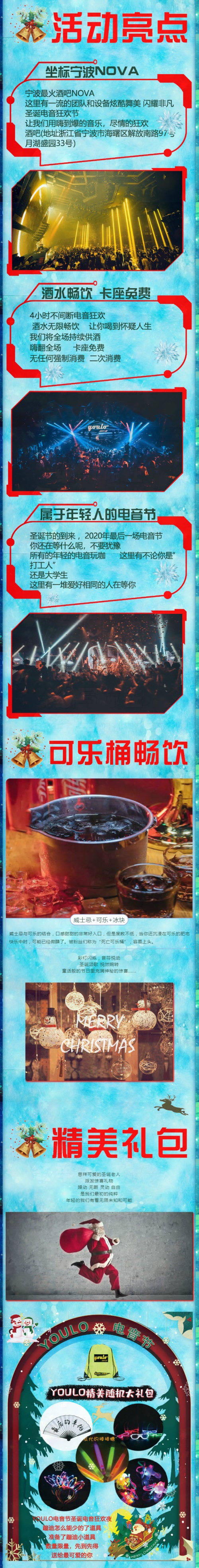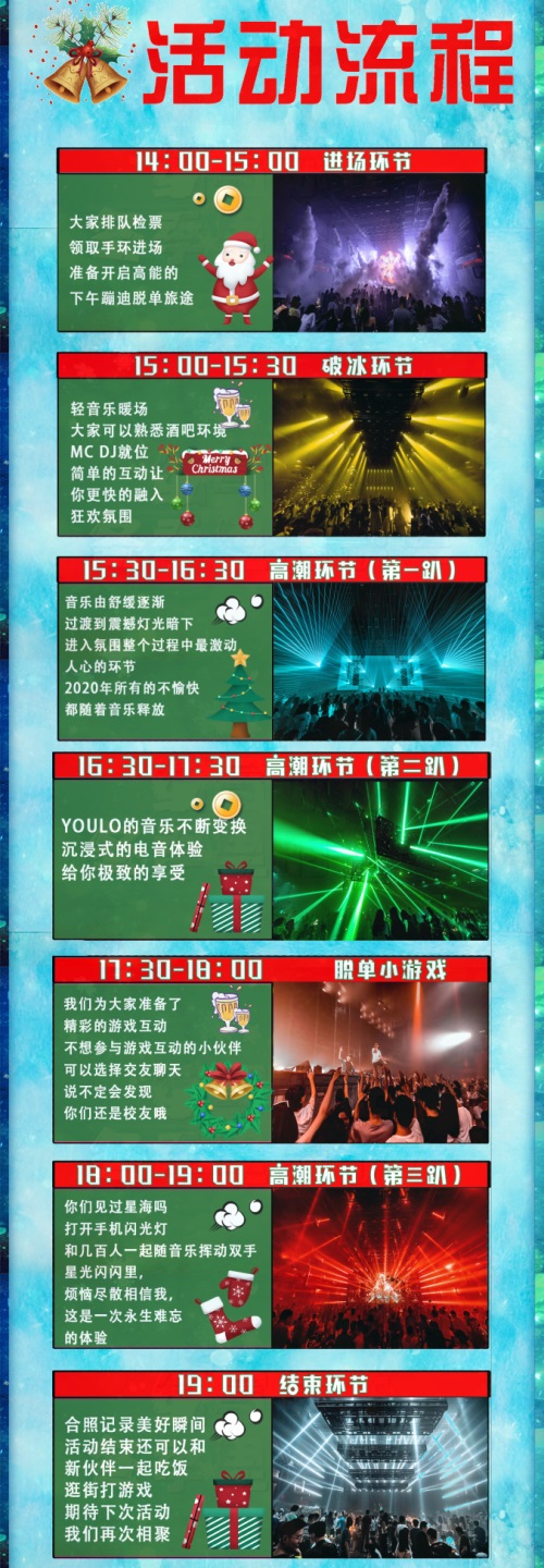 你准备好了吗?感受不一样的圣诞狂欢夜,开启2020年最后一场圣诞电音狂欢,宁波YOULO圣诞电音节,将带你燃燥这个夜晚,雪花飘落,霓虹闪烁,整晚一片焕彩素裹 。