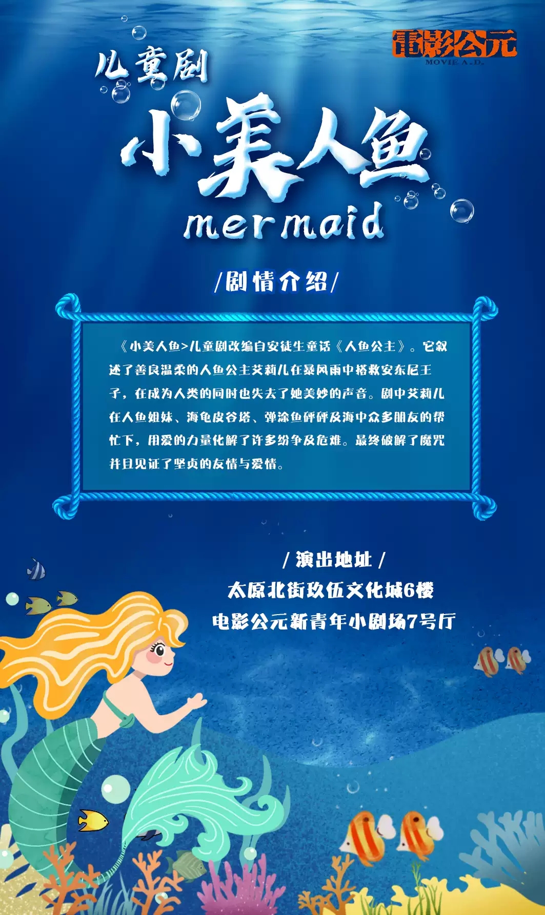 儿童剧《小美人鱼》沈阳站,满足小朋友们的童话梦和对海底的幻想。