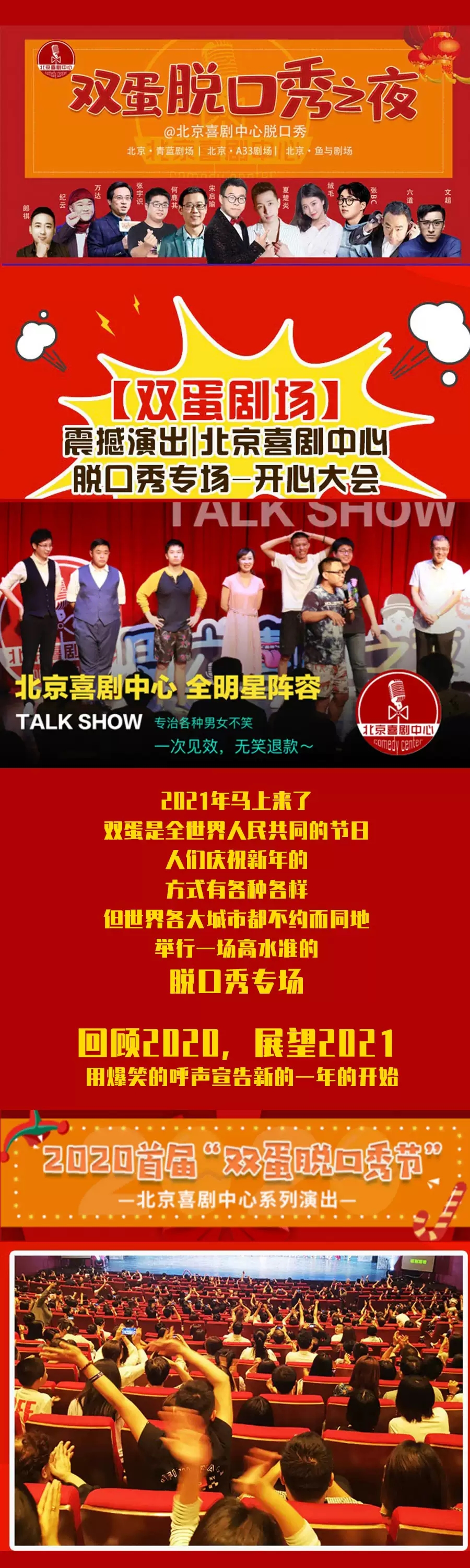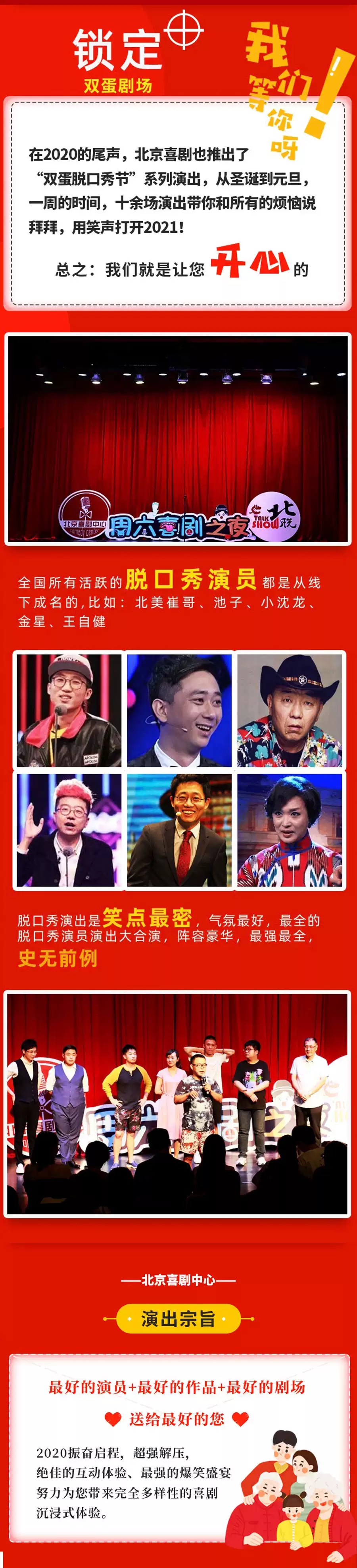 北喜双拼《戏精的诞生》脱口秀专场北京站,请勿携带管制刀具、打火机、易燃易爆物、放射性与腐蚀性物品等危险物品,请您自觉遵守安全检查。文明观看,遵守现场秩序,请勿吸烟、随地吐痰、乱丢垃圾、损毁设施、投掷杂物。感谢您的支持。
