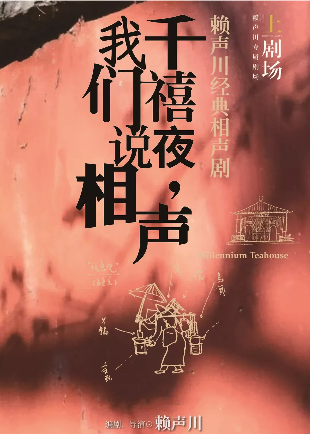 《千禧夜,我们说相声》是赖导推出的第五部相声剧。早在千禧年到来之前,表坊即提出千禧夜演出相声剧的构想,面对一个新的世纪,创作者自然有许多感触。赖老师认为在展望前景之际,似乎仍应看看这百年来究竟有什么东西是无法改变的,于是这部以千年茶园为背景的相声剧就此展开。在“千年茶园”里—一个无论时代如何更迭都永久存在的表演空间,上演着千年不变的时代闹剧。