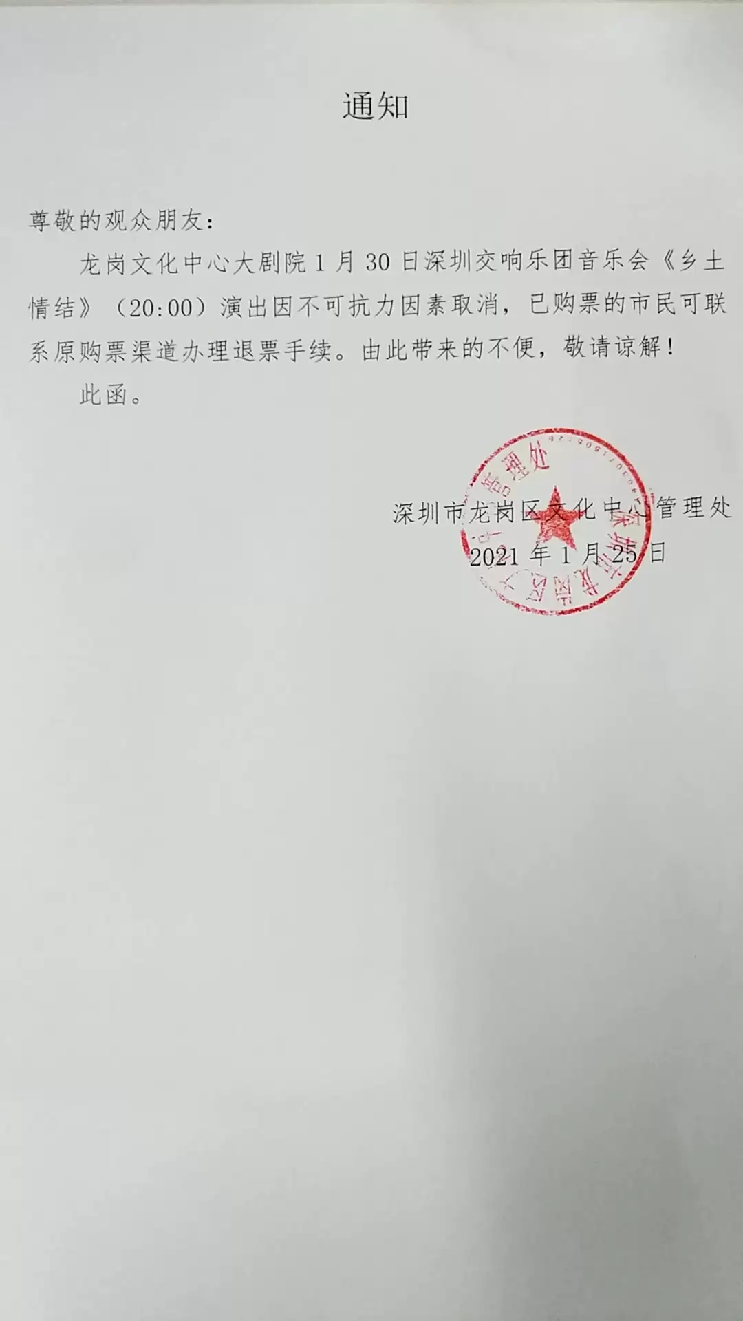深圳交响乐团音乐会,演出开始前请提前进场,演出前10分钟停止安检和检票,每票一人,对号入座,进门一次有效。迟到观众请幕间在引导员引导下入场,并就近入座。演出期间请将手机等响闹装置置于静音状态,请勿随意走动,妨碍他人观看演出,请勿在通道内滞留,在场内大声喧。感谢您的支持。