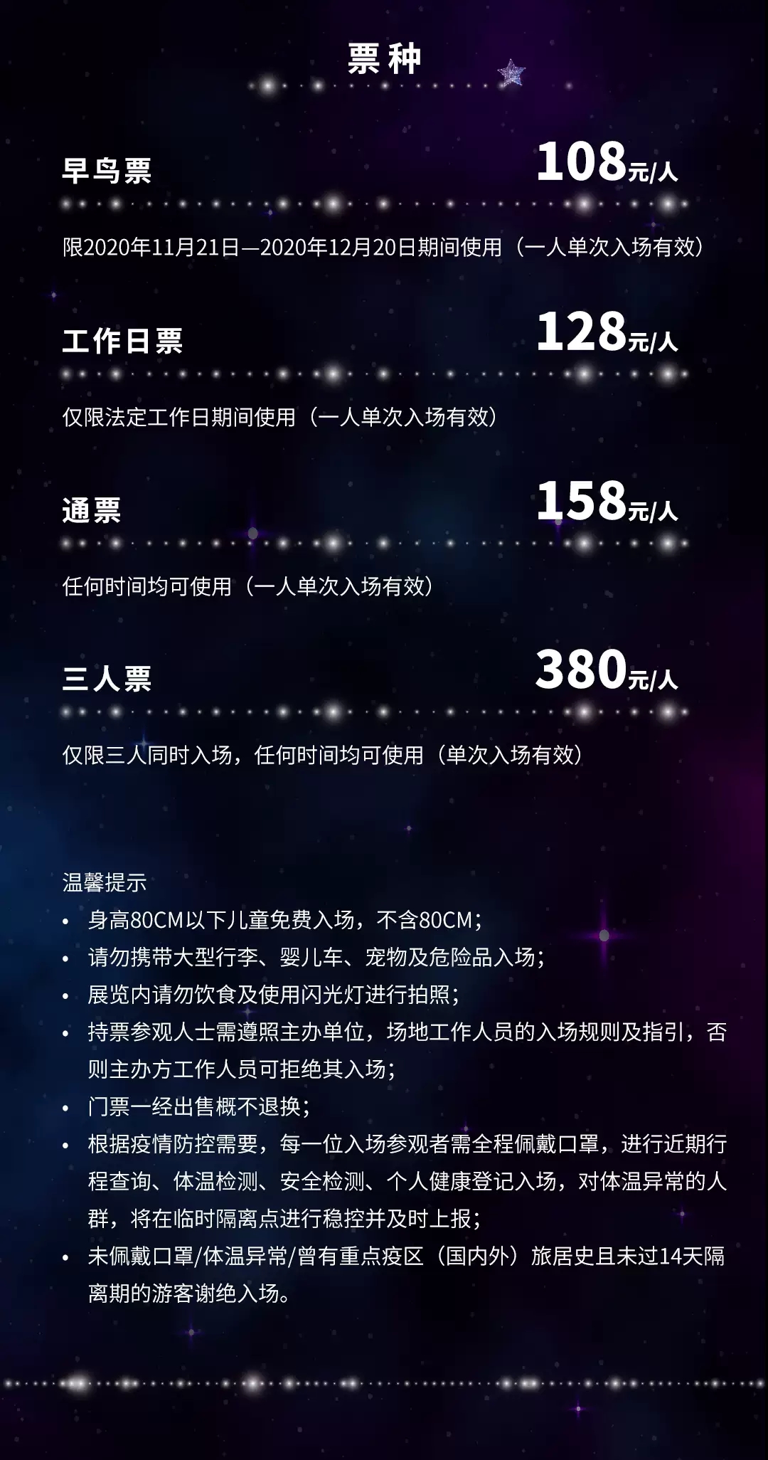 1.2米以上凭成人票入场,1.2米以下谢绝入场