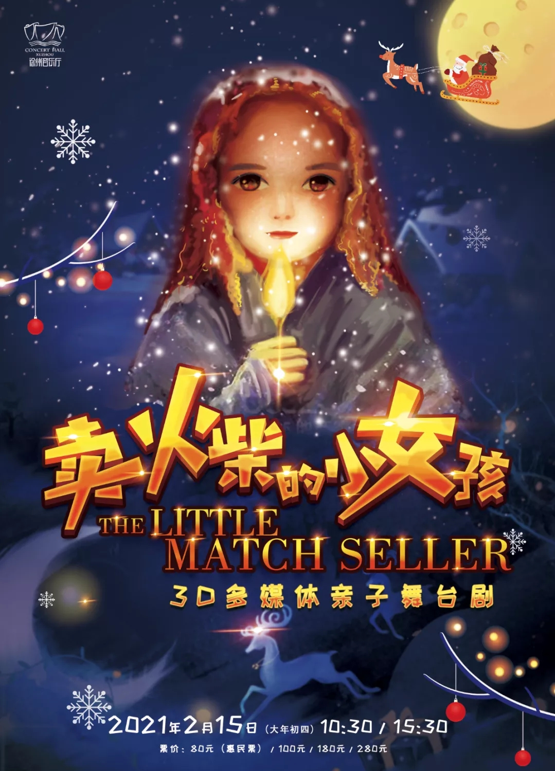 无论是成人还是孩子,都有光临童话世界的权利。2021年2月15日3D多媒体亲子舞台剧《卖火柴的小女孩》在徐州音乐厅等你!