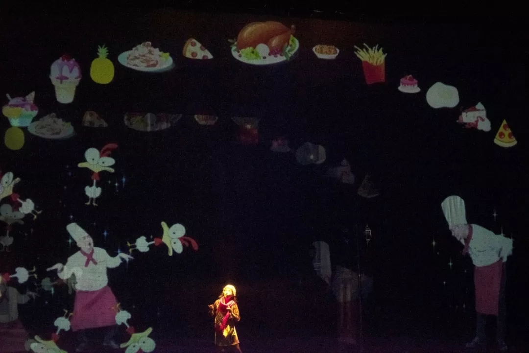 温暖的大火炉、喷香的烤鹅、美丽的圣诞树,慈爱的爷爷,利用3D舞台技术,以一种“真实又梦幻”的形式呈现在观众面前。