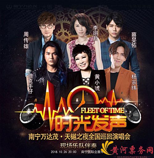 2018时光发声全国巡回演唱会携手杨宗纬、迪克牛仔、周传雄、黄小琥、李翊君、蔡旻佑将在南宁带来一场颠覆传统怀旧金曲晚会的倾情之作,用歌声讲述时光流淌中的故事,整场晚会就是一个轮回,导演组创造性的以春夏秋冬的自然轮回表现手法,配合每个篇章的每个故事。由坤宝德文化传媒集团、广西昀泽集团携手打造的"时光发声"演唱会,10月26日将在南宁上演,用歌声唱响回忆。