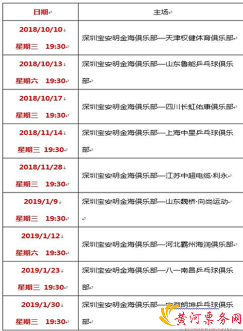 2018-2019赛季乒超联赛要开始了!大家可以在家门口感受国球的力量啦!2018年10月份至2019年1月份,深圳宝安明金海俱乐部9场主场比赛,在宝安体育中心体育馆主馆举办。