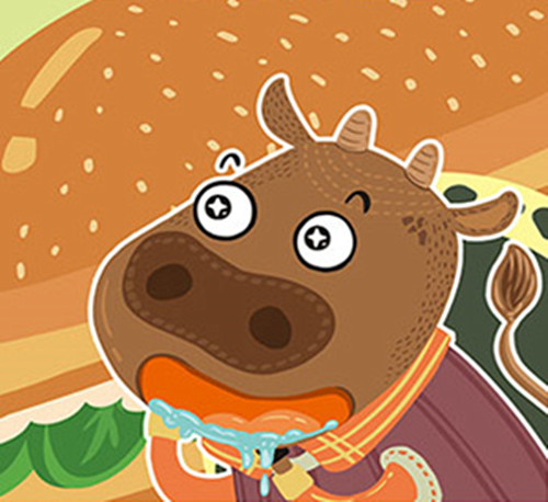 小牛妈妈对要断奶的小牛说:吃饭要去“吃饭学校”学习,因为吃什么、怎么吃,直接关系到身体健康。