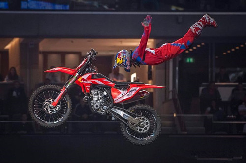 这是一项集体育、竞技和娱乐观赏为一体的运动,首先比赛具有危险性,车手们骑着摩托车通过斜坡冲向高空,在空中做着各种高难度的动作,或者人车一体360度旋转,或者双手抓把身体垂直倒立,或者双手离把如飞鹰展翅一般伸开手臂,在高空完成动作后,车手再骑着摩托车从高空降落,重新回到地面上,这中间有一个环节出错,就会摔倒受伤,甚至有生命危险。