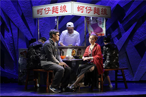 《圆环物语》,不诉诸家国情怀,不诉诸个人理想,没有英雄,更没有完人。事业、家庭、情爱、欲望,所有故事都从普通人的生活中自然生长出来。它不像诸多文学作品那样创造一个超于日常经验的新奇世界,而是忠实于我们正在体验的日常生活。这般平实到骨子里的“烟火气”,是整部《圆环物语》的基准调性。值得一提的是,《圆环物语》这出戏有八场景,若依过去演出方式,熄灯、落幕、换景等相当浪费时间,因此舞台大胆设计了一个土制的旋转舞台,加上幻灯字幕投影,在场景转换的过程中,随着萧邦钢琴圆舞曲的音乐,更是形成一种疏离的效果,在情节之外加上对情节的评论。并且序场也安排的很特殊,由七位演员在台上一字排开,以接力方式叙述圆环的历史,这也相当考验演员的实力。