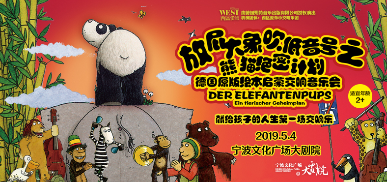 5月4日宁波文化广场大剧院,2019放屁大象吹低音号之熊猫绝密计划德国原版绘本启蒙交响音乐会-宁波站,这是一场故事和音乐完美融于一体的视听交响音乐会,温馨而欢乐。