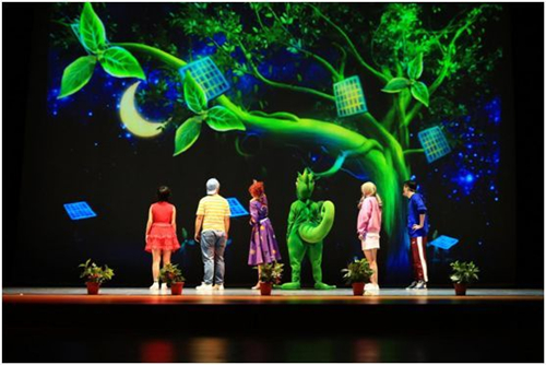 神奇的3D舞台效果,把你带入不同的场景,极地冰川、大气层、海洋森林沙漠,上天入地,给你视觉冲击。卷毛老师带领学生们到北极,亲眼目睹气候变暖,飞入大气层,亲身体验温室效应,来到城市上空,了解二氧化碳的排放源,参观太阳能和风力设备,认识替代能源。