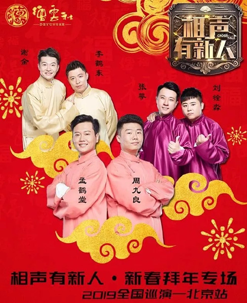 2月23日,北京2019“相声有新人”-新春拜年专场。即将在北京展览馆剧场演出,这场演出是由《相声有新人》冠军孟鹤堂、周九良,亚军谢金、李鹤东和张番、刘铨淼领衔的。2月23日,让我们在这个寒冬看最精彩欢乐的作品温暖我们的心!