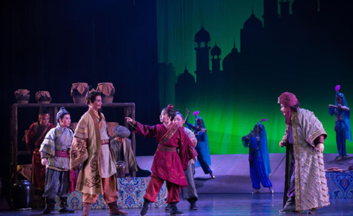 作为音乐剧,《丝路精灵》 除贯穿全剧的多段配乐歌唱外,还融秦腔和说唱艺术于一体,加入了杖头木偶、提线木偶以及皮影表演等,让舞台呈现更具传统文化底蕴及绝活技艺的吸引力。
