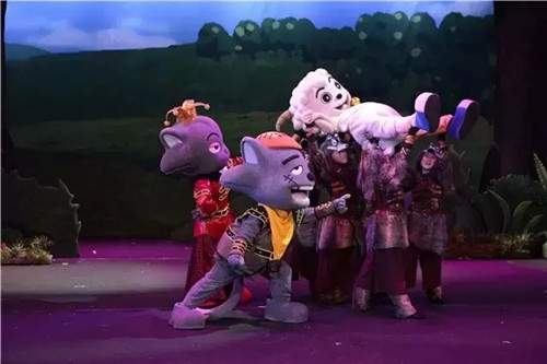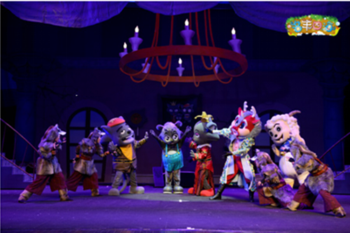 运用多层次舞台设计,立体书的概念,把大家在动漫熟悉的青青草原场景,狼堡场景立体化,身历其境的感受动漫世界,而且搭配道具布景变化,角色走位,舞蹈编排,体验到如电影一般的镜头语言。