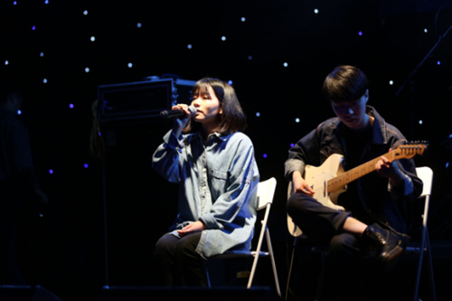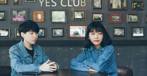 主唱是个笑起来温暖又可爱的女孩,叫王心怡;吉他手兼编曲是个酷酷的短发姑娘,叫吴佩岭。