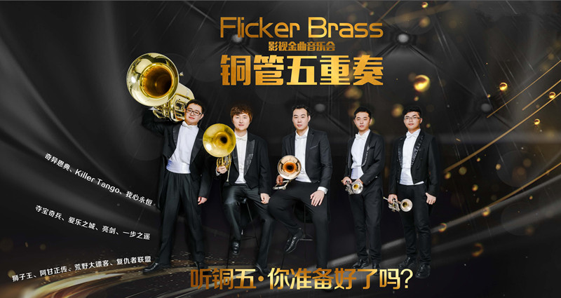 Flicker译为闪烁闪光之意,五个来自不同省份,充满朝气的年轻人,为了共同的梦想,像他们手中闪烁的乐器一样,在舞台上挥洒属于他们的光与热。5月17日,2019Flicker Brass铜管五重奏影视金曲音乐会-深圳站,听铜五,你准备好了吗?