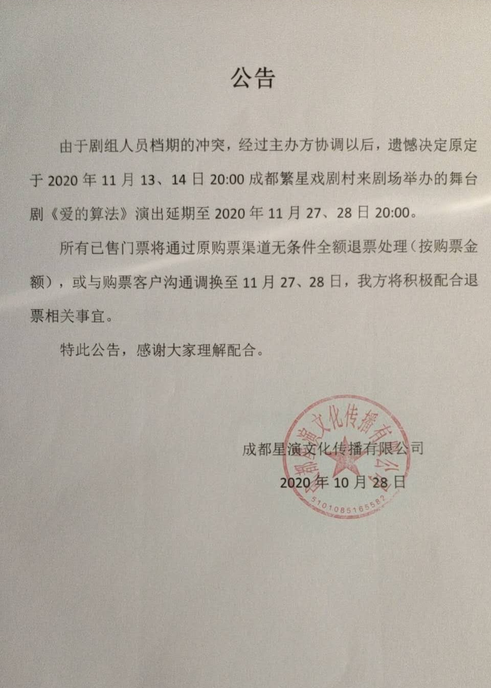 11月27日,戏剧《爱的算法》成都站来啦!该剧的编剧、导演,成都理工大学的曹飞越老师,将带领演员们在成都繁星戏剧村·来剧场,为我们献上一场直击都市人心灵的话剧『爱的算法』。